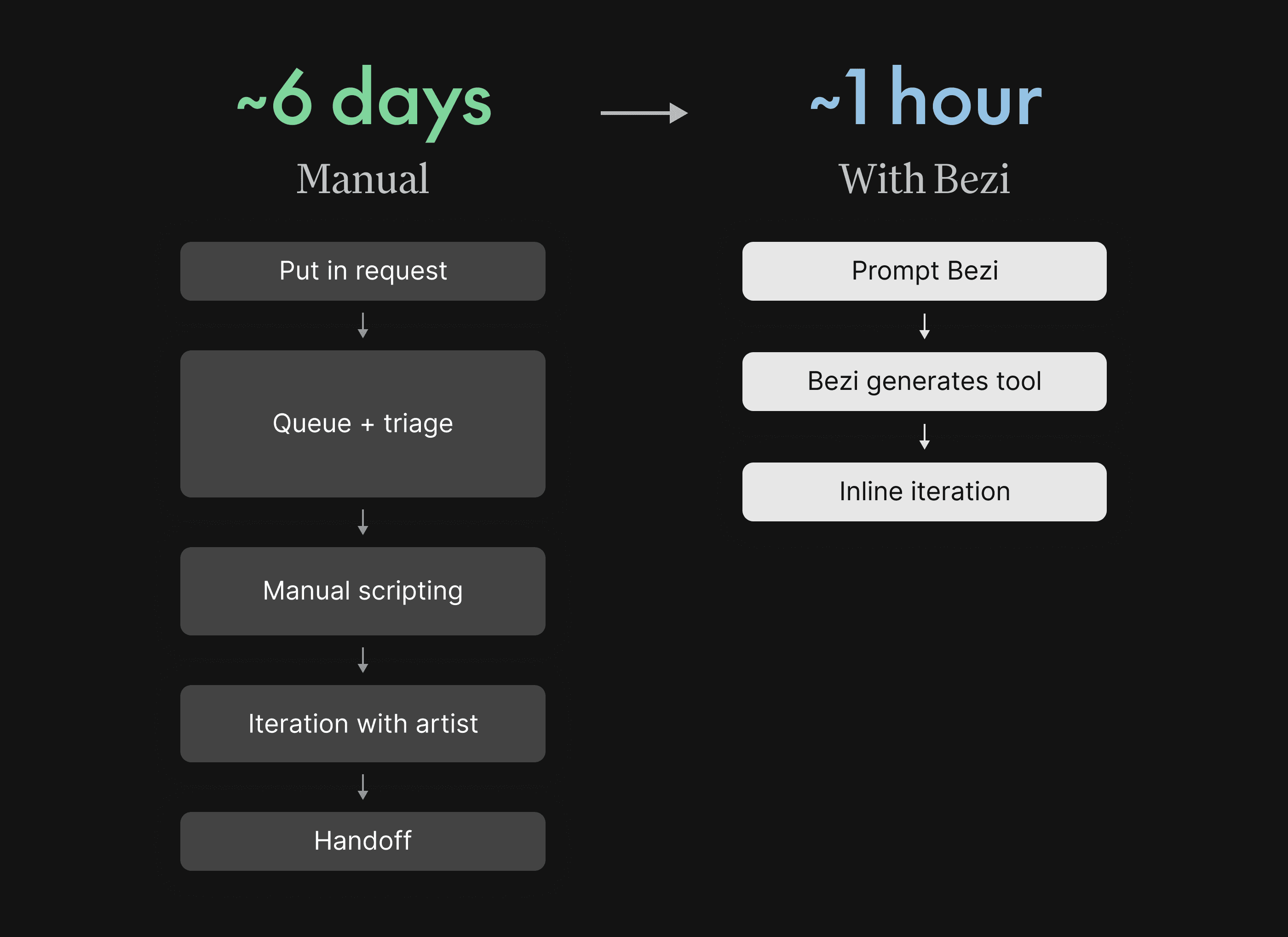 This production-wide efficiency was driven by two fundamental changes to the team’s workflow that Bezi was able to unlock for the team:
