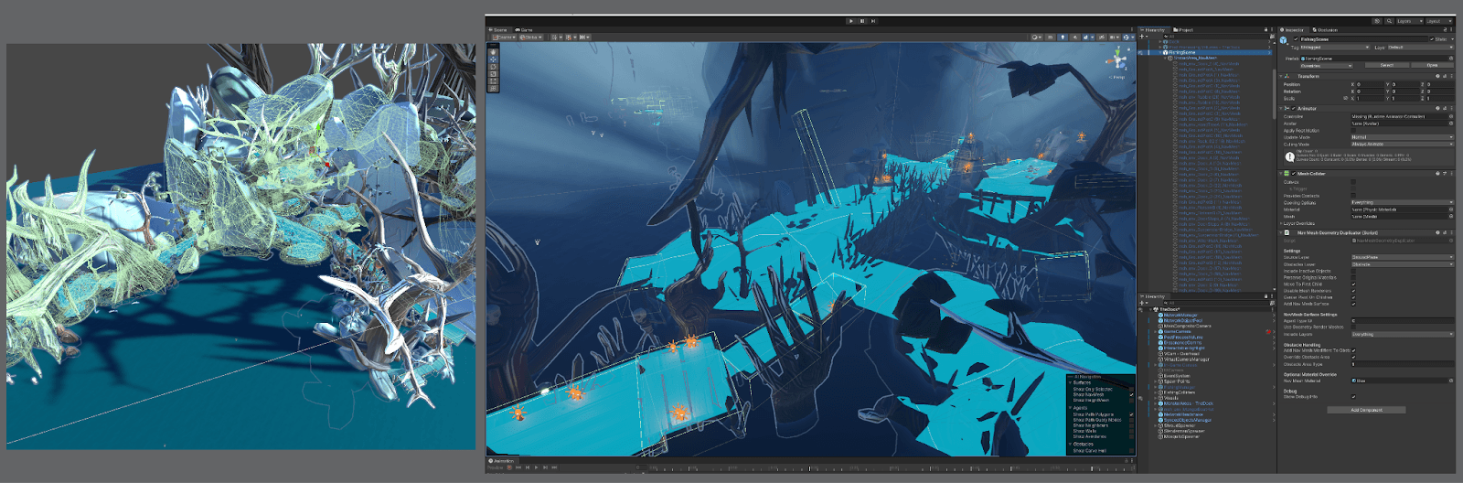 The NavMeshGenerator: This tool was built to create NavMeshes for the game's enemies. The tool automates the process of duplicating collision objects, organizing them into a consistent structure, adjusting the models for optimal surface/path fit, and cutting holes for obstacles.