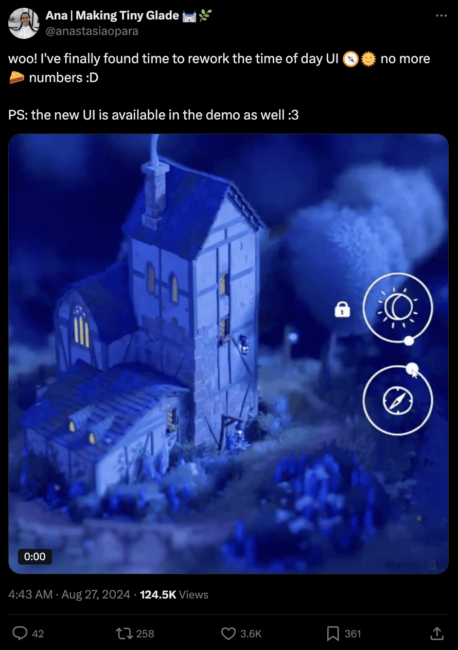 One of many updates from one of devs of Tiny Glade (Source: X/Twitter)