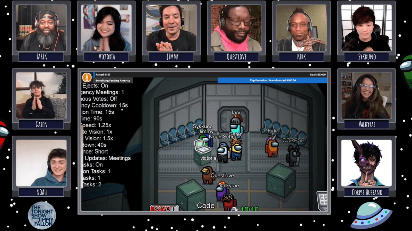 Various personalities playing Among Us on The Tonight Show (Source: SkyNews)